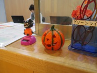 3階受付前には今月末にあるハロウィンの小物や柿や落ち葉などでお客様の目を楽しんでもらえるようにしております♪
