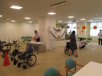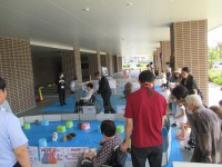 3階エントランスでは、駄菓子やジュースのプレゼントや売店があり、ちょっと一休みされていました。またとなりのホールでは福祉用具の試乗会や、ゲームコーナー、マッサージ体験が行われました。