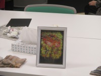 講師の方のアドバイスで大元の構図を決め、硝子盤にアクリルを少しずつ塗っていきます!その後麺棒や、筆など様々な道具を駆使してアクリル絵の具を延ばしたり、ぼかしに使ったりと、工夫をしながら作品を仕上げていきました♪