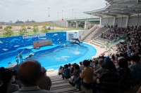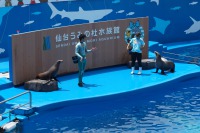また、この日のメインイベント!2階のエントランスからイルカ・アシカショーを楽しみました!イルカのジャンプやボールを使ったものなど約20分ほどのイベントでしたが、拍手されたり歓声を挙げたりと皆様笑顔になっていました♪