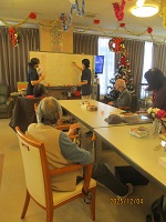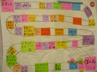 今日は、すごろくゲームをしました。サイコロを投げて出た目だけ進みます。ブタの鳴き声、1曲歌う、ダンス、初恋の話、尻文字・・等、が出ました。ブタの鳴き声は、ぶーぶー、1曲歌うが出た方は、カラオケがお好きな方でしたが、咲いた咲いたチューリップの花が♪♪♪と歌われました(^-^)皆様、何が出るかとヒヤヒヤされていましたが、笑顔で笑いありの時間となりました(*^▽^*)