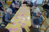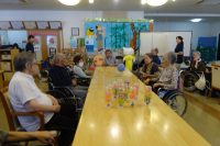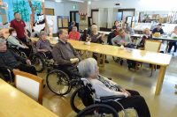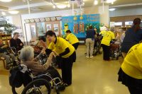 本日は音楽の先生を迎えての音楽療法の日です。冬にまつわる歌を何曲か歌い、鈴や太鼓を使って一緒に楽器を演奏したりしました。