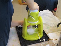 今日はとても暑かったのでおやつにかき氷をお出ししました。前もって氷を作っておいて良かったです!色とりどりのシロップを用意してありますので好きなものをかけて下さいね。と言うと「わあ私は何をかけようかしら」「二種類のシロップをかけてもいいかしら?」と皆さんどのシロップにするのか迷っていました。「暑い日にかき氷を食べられて幸せだわ」と喜ばれていました。またかき氷を作りたいと思います( *´艸`)