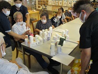 本日のレクリエーションは『もぐら叩きゲーム』をはじめてやってみました。ゲームの内容はもぐらの絵が書かれた紙コップをテーブルに20個並べ、紙コップで作ったハンマーで挟んで取っていくといったゲームです。利用者様に対面で座ってもらい目の前の方と1対面1のトーナメント方式で実施しました。はじめてのレクで最初は戸惑う利用者様もおられましたが、慣れてくると皆さん楽しそうに一生懸命身体を動かされていました。またやってみたいと思います。お疲れ様でした(^-^)
