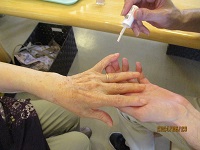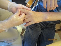 今日の午後は美容ケアでフェイスマッサージ、ハンドマッサージ・ネイルケアを行いました。皆さんとても楽しみにしていたようで「今日は何色にしようかしら」「手の関節が痛いからマッサージ助かるよ」と喜ばれていました。フェイスマッサージをされた方は「顔がスッキリしたわ。」「気持ちよくて寝てしまった」と笑顔で言われていました。次回もリラックスしてもらえるようにスタッフ一同頑張りたいと思います(^-^)