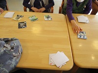 今日の午後は脳トレで「かるた」を行いました。木曜日を初めて利用される方が二名いて「このメンバーとかるたをするのは楽しそうね」と言われていました。手始めに上毛かるたしましたが皆さん「はい」「はい」と早いこと。次にいろはかるたです。これもまた途中まで読み上げると「はい」と取られていました!譲り合いもありとても楽しい時間になりました。次回も楽しみにしてほしいですね(^_-)-☆