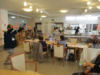 今日の午後は脳トレホワイトボードを使い脳トレを行いました。真ん中に入る文字は何?とスタッフが書き始めると「分かったわ」「もしかするとあれ?」と皆さん答え始め「皆さん早すぎますよ!!!」と笑いながら脳トレをしました。外は雪が降り寒そうでしたがレクではとても盛り上がりポカポカでした。次回も楽しみましょう(*^^)v