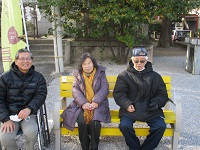 本日は天候にも恵まれ外出レクの為、「上野総社神社」へお参りにお出掛けしてきました。皆さん思い思いの願いを込めて手を合わせておられました。神社の中に「幸せの黄色いベンチ」という椅子があり、利用者様に伝えたところ、喜んで座られておられました。改めて今年もよろしくお願いします。皆様にとって良い1年になる事を祈っています(^^)/
