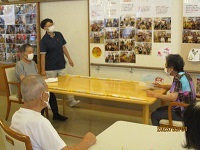 本日はイントロクイズをしました。曲のイントロを聴いて、その曲名を利用者様に当ててもらいました。その後、全員でその曲を歌いました。イントロを聴いてもなかなか曲名が出ず悩んでいましたが、少しイントロを長くするとなんの曲か分かり皆さん笑顔が見られました。お疲れ様でした(^^♪