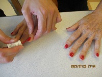 本日は美容ケアを実施しました。最初はネイルケアをしました。利用者様から「若返った気がする。」「綺麗な色だね。」との声が聞かれ喜ばれておりました。次に顔のマッサージをしました。顔のマッサージやパックを一人30分程され気持ち良かったのかウトウトされる方もいらっしゃいました。次回もお楽しみにしていて下さい(^-^)