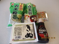 今日の午後は皆さんが楽しみにしている手作りおやつの日です。本日のメニューは「冷やし白玉団子」です。材料は・・・白玉粉、よもぎ白玉粉、豆腐、アイス、チョコクリームです。