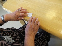 今日の午後は6月の壁画で使う紫陽花のガクを作りました!職員が折り方を説明しながら折っていただきました。折り紙が得意な方は一度折ると忘れないうちにと、どんどん折っていきます(^-^)「指先が器用じゃないから」と話しながら綺麗に折る方「覚えられないのよ~!」といいながら完璧に折る方と個性がでていました。みんなで、わいわい楽しく折ることができました♪♪たくさん折って綺麗な紫陽花を咲かせましょうね✨