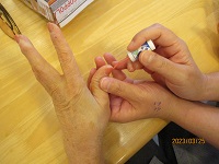 今日は、皆さんの手に輝きを・・(^-^)ハンドネイルをしました。色々な色を仕入れてきたので皆様選ぶのに時間がかかりました。濃い色を選ぶ方、淡い色を選ぶ方、その方の個性が出ますね(^^♪皆様どの色もとてもお似合いです。次はどの色にしようかなと話している方もいらっしやいました(^^♪次が楽しみですね!