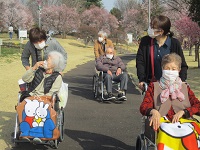 本日は感染対策をしっかり行った上で伊勢崎市にある伊勢崎西部公園へお花を見に行きました。気温も20℃くらいあり風もなく天候に恵まれました。公園に咲いているオカメ桜やコヒガン桜、ミモザなどをゆっくり歩きながら見て回りました。桜を見て、「わー綺麗!」「来て良かった!」と喜ばれておりました。途中でベンチに座り桜を見ながらお茶とお菓子を召し上がりました。良い気分転換になったと思います。また来月楽しみにしていて下さい(^-^)