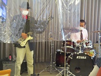 今日の午後は今年最後のブルースターさんの演奏会を鑑賞しました。コロナ感染予防対策強化により利用者様、演奏者の方々が安全に音楽を楽しめるよう予防対策をしっかり行い演奏が始まりました。今回初めて観賞される利用者様も多く懐かしい曲に手拍子やマスクの中で口ずさみながら演奏を楽しまれていました。5月訪問以来で演奏者の方達も少し緊張されていたようですがアンコールもあり両者が楽しめた演奏会でした。次回は3月に予定しています楽しみです(^^♪