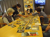 今日の午後のレクは上毛かるたをしました。1回目はスタッフが読み手になり利用者さんも枚数を取るのに集中されていましたが2回目では、利用者様が読み手になってくれて、大変盛り上がりました!かるた一枚を見つけるのに自分の目の前のかるたは中々見つけられず、遠くのかるたは素早く見つけられ一番枚数の多い方は30枚でした!皆さん楽しめたようです。