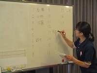 今日は、ホワイトボードを使って脳トレを行いました。「全国の名字で多い順番に」「群馬県の名字で多い順に」を皆様に答えて頂きました。「高橋」「鈴木」「伊藤」「加藤」「中村」・・などが上位に来ますがご自分の名字が出た時は、皆様嬉しそうにされていました。全国と群馬県では上位に来る名前も変わってくるんですね。皆様驚いていました!