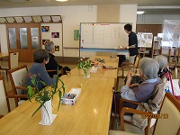 今日の午後はホワイトボードを使って四字熟語の読み方や文字の並び替えをしました。読み方は、みなさんスラスラと答えて下さいました!さすがです!!文字の並び替えでは、みなさん苦戦されていました。例えば「なばんごなり」並び替えると...「ばなな・りんご」となります☆職員からヒントを出したり絵をかいたりして答えていただきました。今日も楽しく脳トレができました♪