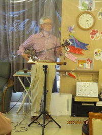 今日は久し振りの演奏会でコロナ感染予防対策の中で安全の元「尺八と三線」の演奏を観賞されました。演目も唱歌から演歌、歌謡曲と全15曲を演奏して頂き、尺八の音色で聴く歌謡曲も、ゆったりした気分で観賞でき、三線では沖縄音楽を歌と三線で4曲歌っていただきましたが、利用者様も馴染の少ない三線の音色に聞き入っていました。最後の曲になると、利用者様からアンコールが出たのでテンポの良い「浪花節だよ人生は」で盛り上がりました。利用者様も久し振りの演奏会を観賞し楽しめたようです(^^)/
