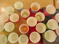 今日の午後のレクは久しぶりにピンポン玉ゲームを行いました。紙コップに10点から200点までがランダムに並んでいて、皆さんには見えないようになっているので投げ終わってから点数が分かります☆5個のピンポン玉を全て入れられた方もいました!「一つしか入らなかった。残念だわ」と言われている方が意外と高得点だったり皆さんで盛り上がりました。次回も楽しみましょう(*’▽’)