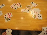 今日の午後はカードゲームを行いました。始めにかるた取り!上毛かるたと群馬の方言かるたの二手に分かれて行ったのですが皆さんの「はい!」「はい!」の声が良く聞こえ真剣にされているようでした。次にトランプでババ抜きをしたのですが同じカードばかりがグルグルと周り「また同じカードが来たよ」「あなたまたそのカード引いたのね」笑い声が響きとても盛り上がりました。また楽しい時間を過ごしましょうね(^-^)