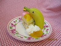 今日の午後は皆さんが楽しみにしている手作りおやつの日です。本日のメニューは「フルーツロールケーキ」です。材料はスポンジケーキ、生クリーム、バナナ、桃缶、です。スポンジケーキに生クリームをぬり細かく切ったフルーツを乗せてクルクルと巻いて切るだけ。簡単に出来てもボリューム感はあるので皆さん喜んで召し上がっていました。次回も美味しいおやつを作りたいと思います(^_-)-☆
