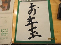 明けましておめでとうございます。今年もよろしくお願い致します。本日は、お正月という事で「書初め」をしました。皆さんに何を書くか考えて頂き書いてもらいました。学校の先生をしていた方はさすがです。書き終わったら拍手がわき起こりました。まだ書いていない方がいらっしゃるので引き続き書いて頂きたいと思います。