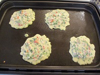 今日は皆さん大変楽しみにしている手作りおやつの日です。本日のメニューは「チヂミ」です。材料はチヂミ粉、玉ねぎ、パプリカ赤、ニラ、ベーコンです。全ての材料を細かく切り粉と混ぜてホットプレートで焼きました。チヂミは皆さんに好評でおかわりされる方が多いです。次回も美味しいおやつを提供したいと思います(^_-)-☆