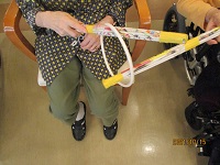 今日は、運動レクをしました。ボール運び、輪っか運び、ピンポン玉運びをしました。慣れている方は手ぎわがいい!他の方に教えてあげていたり・・楽しそうに教えてあげていました。体を動かすと自然と笑顔が出ますね。職員も楽しい時間となりました(^_-)-☆
