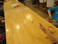 今日の午後は『玉入れ』をしました。ピンポン玉を使ってポンポンポーンと力を入れないで紙コップに入れていきます。紙コップには点数が書いてありますが利用者様からは点数が見えないようになっているので何点入ったのかは職員が確認するまでわかりません☆力が入ると行きすぎたり、力が足りないと届かなかったりと中々難しいものです。ボールがピンポン玉なので難しいのかもしれませんね!職員もしましたがこれが中々入りません(>_<)まだまだ練習が必要だと感じました^^;