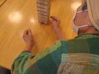 今日の午後は「かるた」を行いました。皆さん何度も行っている群馬名物上毛かるたです!何度も同じかるたをしているので皆さんが途中で読み札を読みながらかるたを取っている方がいました。灯台下暗しで目の前にあるのに気付かないで「ほら!そこにあるよ」と言われ慌ててかるたを取る方やご自分で取った札を他の方に配ってしまう方もいました。次回は皆さんに読み手をして頂こうと思います(^^♪