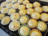 今日は皆さんが楽しみにされている手作りおやつの日です。本日のメニューは。。。ベーコンとチーズの蒸しパンです。材料はホットケーキミックス、ベーコン、チーズ、牛乳の四品です。ベーコン、チーズを細かく切って粉、牛乳と混ぜてカップに入れて蒸しました。皆さん「チーズがとてもいいアクセントになっているわね」「優しい味付けで美味しいね」等言って頂きました。次回も美味しいおやつを作りたいと思います(^_-)-☆