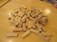 今日は、ジェンガをしました。皆さん真剣です。棒を抜くときはシーンとなり、抜けた瞬間は皆さん嬉しそうにホットします。今日はこれまでの最高記録を更新し、4周りまでいきました。倒した方は、勢いのあるかたで、倒した瞬間は「あーーー!」と口にしていました。またしましょうね(^_-)-☆