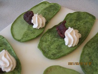 今日は皆さんが楽しみにしている手作りおやつの日で、「八つ橋風」を作りました。材料はホットケーキミックス、白玉粉、シナモン、あんこ、抹茶、生クリームです。水で溶いてホットプレートで焼いてあんこと生クリームをおいて巻いたら出来上がりです。もちもちしている生地でとても美味しいと皆さんに言って頂きました。次回も美味しいおやつを作りたいです(*^^)v