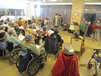 慰問によるハーモニカ演奏会を行ないました。コロナウイルス感染予防に配慮し行っています。皆さん大変楽しみにされており懐かしい音色にうっとりされていました。最後はアンコールの拍手!追加演奏で最後まで堪能出来たと思います。皆さんまたの演奏会に