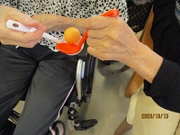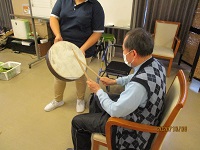 今日は皆さんが楽しみにしていた音楽療法です♪♪コロナウイルス感染症対策により数ヵ月自粛しておりました。感染予防対策を行ない再開となりました。ピアノ伴奏でハミングで「瀬戸の花嫁」から始まり音楽によるストレッチ体操を行ない、徐々に音楽に引き込まれて行く様子が伺えました。楽器を使用(マラカス・スティック・太鼓・ハンドベル)各時が持って演奏に参加しました。とても良かった様です。最後は里の秋で終了しました。皆さん楽しそうな笑顔が見られ有意義な時間を楽しまれたようです。次回は10月22日を予定しています。\(^o^)/