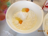今日の午後は、手作りおやつで『さつま芋蒸しパン・黒まめ蒸しパン』を作りました。材料はホットケーキミックス・牛乳・卵・かぼちゃ・黒まめ・さつま芋です。かぼちゃ、ホットケーキミックス、牛乳、卵をボウルに入れかき混ぜます。混ぜた生地をかたに流し込みホットプレートで蒸します。蒸している途中で黒まめ、さつま芋を乗せます。蒸し終わったら完成です!『かぼちゃの味もして美味しい』などの声を頂きました(^v^)