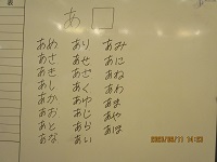 今日の午後は脳トレで「言葉を探そう」を行ないました。まず、最後に「び」が付く言葉を探します。皆さんでずいぶん言葉が出ました。あそび、わらび、わさび、たび・・。次に「あ」から始まる言葉、あめ、あさ、あき、あわ、あせ・・「あ」の方がどんどん出て職員が書くのが間に合わない様でした。次の脳トレも頭を使い楽しい物にしたいと思います(^v^)