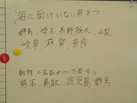 今日の午後は、脳トレで「言葉の並び替え」と「都道府県クイズ」をしました。ホワイトボードに書いた言葉を並び替えて一つの言葉を作ります!例えば「きよびんう」⇒「きんようび」のようになります。『何だろうね?』と首をかしげる方やすぐに答えて下さる方、文字数が多くなるほど難しくなります!都道府県クイズでは、群馬県!をノ―ヒントで早く答えて頂きたかったのに・・・最後まで出てこず、ちょっと寂しかったです(T_T)今日も皆さんで楽しく過ごす事ができました☆