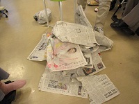 今日の午後のレクは、運動レクで新聞破りリレーを行ないました。職員が新聞を広げて利用者様の前に立ちパンチして新聞を破ります。皆さん必死にパンチをしたり上から手を振りおろしたりして新聞を破っていました。リレー形式にしたので皆さんの楽しそうな大きな声が聞こえてきました。次回の運動レクが楽しみですね。(^O^)/