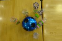 今日の午後のレクは、体を動かすを目的にカラーボールを使ってテーブルボーリングをしました。ペットボトルをピンに代用し、二回ずつ投げてもらいそれを二周します。投げ方が優しくピンが1.2本しか倒れない方やボールがピンに当たらず通り過ぎてしまう方や一回で10本倒していた方もいました。「当たらない~」「むずかし~^_^;」などの声がちらほら聞こえました。スタッフも参加し一緒に体を動かしました。今日もコロナ対策の為隣り同士の間隔をとり皆さんで楽しみましたヽ(^o^)丿