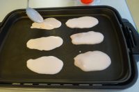 今日の手作りおやつは「桜餅」です。明日のひな祭りに合わせてこのおやつにしました。材料は小麦粉、白玉粉、粒あん、桜の葉です。小麦粉、白玉粉に水を加えそこに食紅をほんの少し。綺麗なピンク色に変わります。ホットプレートで生地を焼き、丸めておいた粒あんを包んで桜の葉で巻いて出来上がりです。利用者様からは「もちもちしていて美味しい」「桜の葉の香りがとても良い」等好評でした。次回も皆さんに喜んで頂けるようなおやつを作りたいと思います(^-^)