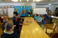 今日の午後のレクは運動レクで的当てゲームをしました。皆さんで楽しい時間を過ごし和気あいあいとした雰囲気で行いました。初めての利用者さんも笑顔で楽しそうに参加されていました。皆さん、的にうまく乗った時は笑顔になります。的をねらってお手玉を投げることは、集中力を高め軽い運動になります。今日のレクも楽しい時間になった様です(^o^)/