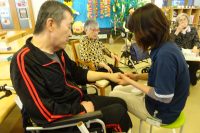 今日はハンドマッサージの日でした。初めての利用者様にも受けてもらいましたが「ここはサービスが良いね」とのお言葉を頂き、他の方からは「気持ちがいいよ」との声を頂く事が出来ました。厚みのある手、大きい手、か細い手、皆様それぞれ素晴らしい、お年の重ね方をしていらっしゃいます。次のマッサージの日までに職員もっと気持ち良く出来る様に腕を磨いておきますね(^o^)丿