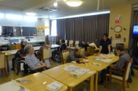 新年を迎え、!お正月を楽しもう!と本日のレクは「福笑い」をしました!一人づつ目隠しをして、周囲の利用者さんの掛け声を聞きながら顔のパーツを置いて行くのですが、右や左、中央の感覚が掴めず「難しいな」と言いながら、掛け声通りにパーツを置き、出来上がった顔を見るとパーツがずれていたり、整った顔に仕上がったり色々な表情の顔が出来ておもしろかったです!利用者様も、お正月の遊びを懐かしく楽しめたようです!!
