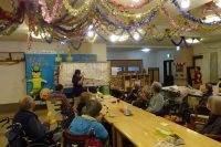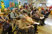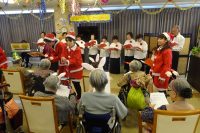 今日のレクは、コーラスによるクリスマスコンサート・メリークリスマスです。!毎年恒例で慰問ボランティアさんによるクリスマスイベントを行ないました。本日は、ゆりかご会さんを招いて皆さんと音楽を楽しみました。きよしこの夜♪あわてんぼうのサンタクロース♪ジングルベル♪等11曲一緒に歌ったり聴いたりしました。大変良かったと伺いました。あっと言う間に時間が過ぎ、最後はアンコールをリクエストして終了しました。その後、親睦を兼ねて一緒におやつを食べ楽しまれました。!ヽ(^o^)丿