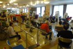 デイの利用者様、今日も元気にリハビリに励んでいます!!マシンを使用してのパワーリハビリが終了すると、次のプログラムは複合トレーニング!ボールや鉄アレイ、セラバンド等を使用して筋力強化を図り、平行棒でのストレッチやバランス歩行等プログラムに沿ったトレーニングを実施しています。皆さん大きな声を出し運動を行ない感染予防!!今日もリハビリ頑張りました(^O^)/