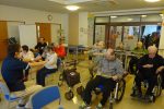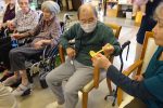 今日のレクは運動会を行ないました。競技は、輪くぐりリレー、玉入れ、ボールリレー、パン食い競争です。運動会音楽の中ハチマキをして雰囲気いっぱいの中、2チームに分かれ始まりです。準備体操後、競技開始チームワーク良く進められました。皆さん真剣に取り組んでおりました。周りの方とのコミニケ―ションも取れたと思います。11/13(水)の行いますので楽しみにして下さい。(^O^)/