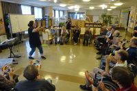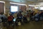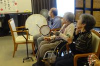 今日は音楽療法の日です。!本日は、紅葉を歌いその後、簡単なストレッチ(覚醒を促す)で声を出しながら手拍子歌唱、お隣りさんとタッチなどを行なう。楽器活動で各自楽器を持ってリズム練習をしながら、高原列車と炭坑節、夜霧よ今夜もありがとうを歌いました。ハンドベルを使いコード練習、うみ、ふるさとを歌い最後は星影のワルツで終了。音楽と楽器を利用し、利用者様もリフレッシュされ楽しんでいました。次回も楽しみですね。(^o^)/