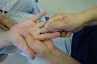今日の午後のレクは、ハンドマッサージでリラックスタイム!!ハワイアンのBGMで職員との談話を楽しみながらハンドマッサージを楽しんで頂いています!皆さんマッサージの後は、血行も良くなり身体が熱くなり気持ちが良い~!と満足されています。職員との談話も昔話や趣味の話、好きな食べ物の話等であちらこちらで笑い声も聞かれ楽しそうでした(^o^)/